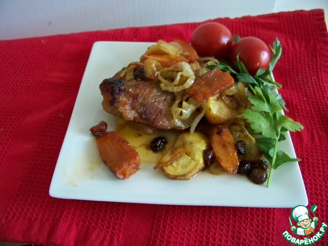 Рецепт «Запеченная свинина с морковью и изюмом»: