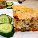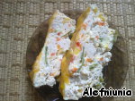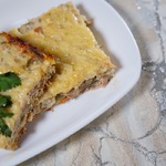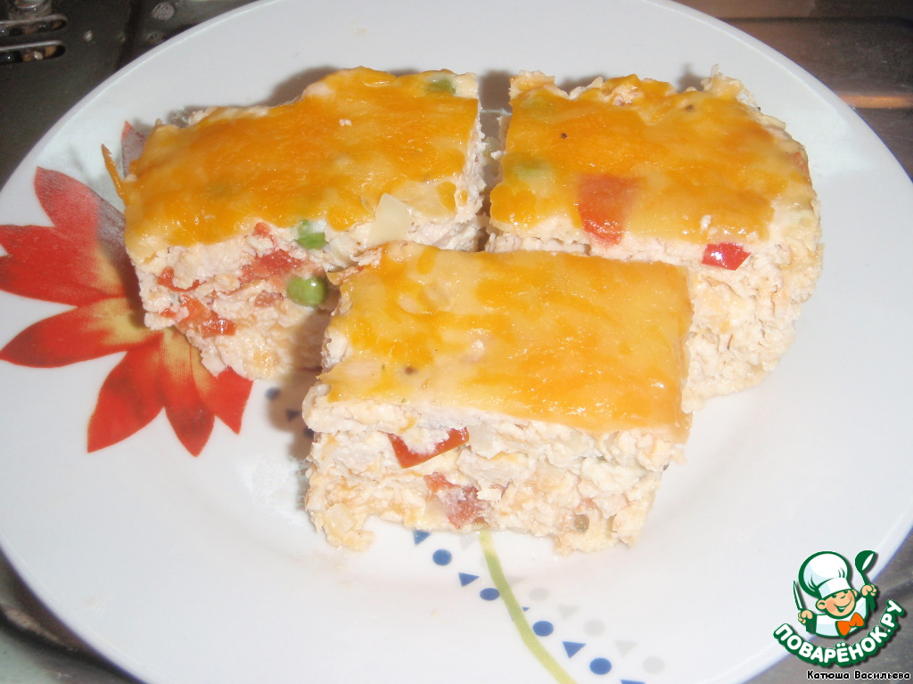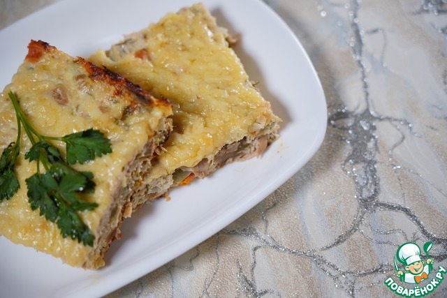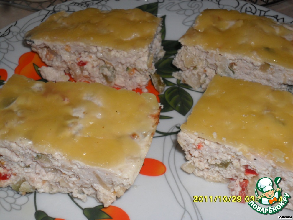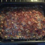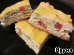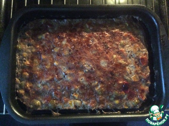Выпекать при 200°C 30 минут, посыпать оставшимся сыром, дать сыру расплавиться.