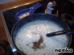Добавляем 2 ст. холодной воды (только холодной!!!), т. к. кефир может свернуться от горячей воды. Мешаем и ставим на средний огонь.
