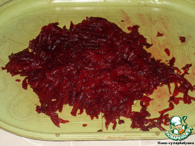 Вареную свеклу очистить и натереть на крупной терке.