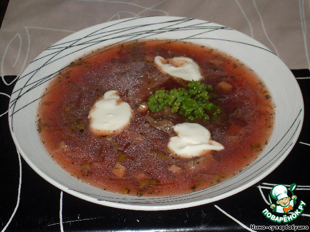 Добавить свеклу в кипящий суп, снова довести его до кипения и сразу же выключить огонь. Накрыть суп крышкой и дать постоять минут 10.