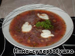 Подавать суп со сметаной, посыпав зеленью.