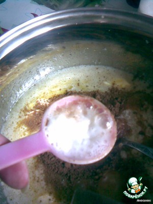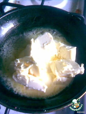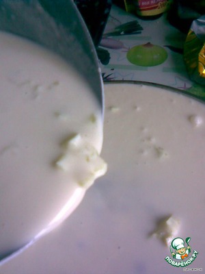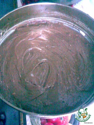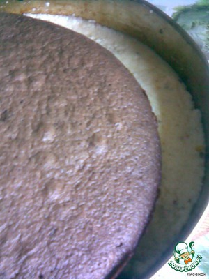 последний корж из формы не вынимать, полить его сметанной пропиткой ( 1/2 от всего) и выложить суфле. -