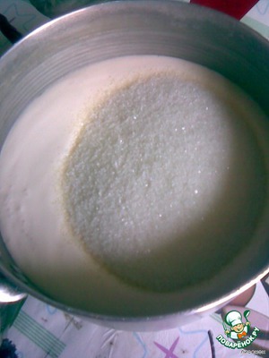 сметану смешиваем с сахаром и добавляем измельченный лимон. -