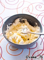 Оставить сливочное масло при комнатной температуре (примерно на 30 минут). Затем сливочный сыр (у меня Филадельфия) смешать с маслом с помощью вилки.
