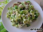 Для заправки растереть желток с горчицей, добавить 2 - 3 ст. ложки растительного масла и лимонный сок. Салат аккуратно заправляют и размешивают. (Можно заправить салат майонезом)