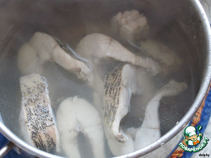 Отварите в кипяшей воде до готовности. Но не переварите, чтобы рыба не стала разваливаться.