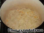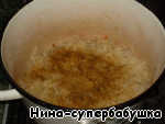 Лук обжарить до золотистого цвета. Можно лук сразу положить с капустой и потушить все вместе, но я люблю обжаренный лук, он придает блюду приятный аромат.