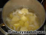 Картофель нарезать и сварить до готовности в подсоленной воде.