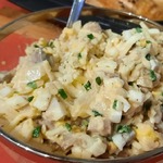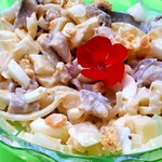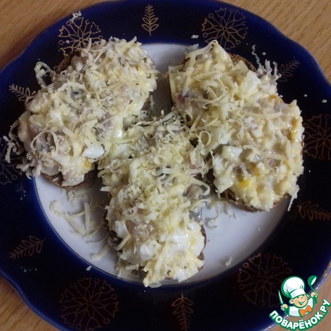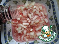 Я делаю ее просто с маринованным луком и майонезом+немного горчицы.