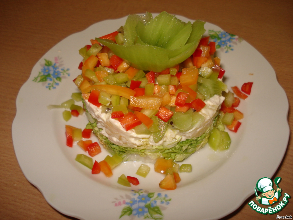 Данный рецепт был размещен на сайте в 2008 г. пользователем aset под названием салат "Ветерок" и иллюстрирован мной в рамках акции "Раскраски"
