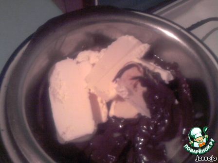 Растопить на водяной бане сливочное масло и темный шоколад. -