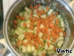 Кабачок нарезаем большими кубиками или любой другой формы, это не столь важно.