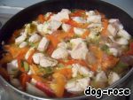 Курица с овощами по-камерунски. Рецепт несложный, готовить очень быстро. Блюдо получается легкое, вкусное, кусочки куриной грудки нежные, не сухие. Соус отлично дополняет блюдо. Готовить такое буду еще, и с удовольствием. Рецепт этого блюда был размещeн на сайте в 2010 году пользователем Торопыжка под названием "Африканская гостья (Курица с овощами по-камерунски)" и иллюстрирован мной в рамках акции "Раскраски".