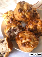 Если сделать тесто пожиже (положив меньше муки), можно выпекать маленькие кексы, однако в этом случае легкие шарики устремятся вверх, и кексы получатся в «шапочках» из шоколадных шариков, ну и печь придется уже минут 15-20. Но получится забавно и тоже очень вкусно.