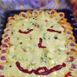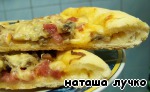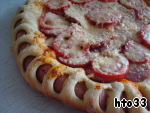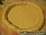 Со второй половиной теста я поступила иначе: в край защипнула тёртый сыр. Предатель-фотоаппарат стал отключаться, поэтому пошаговых фото нет. Вот здесь на фото пыталась показать, как выглядит сырный край. :)