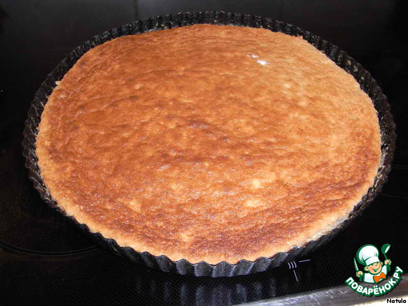 Способ самый простой: взбиваем сразу яйца с сахаром, без отделения желтков от белков, хотя и так можно, просто времени у меня было мало. Остужаем и вынимаем на блюдо. -