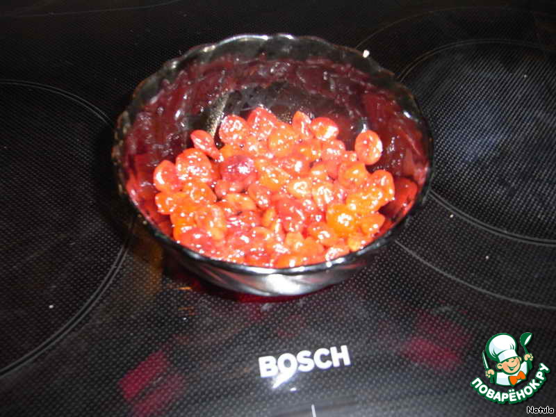 В это время у нас уже замочена в ликере вишня. Я еще добавила немного кипяченой воды, чтобы покрыла вишню.