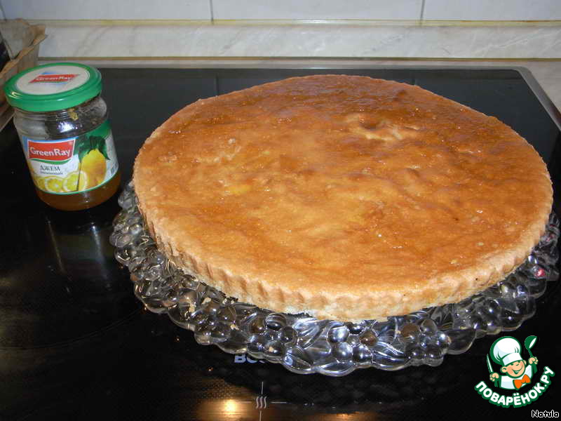 Смазываем нижний корж джемом (можно любой, у меня просто лимонный в холодильнике завалялся).