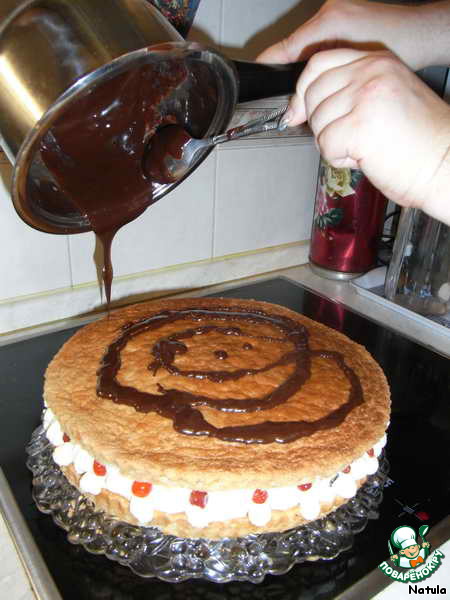Заливаем торт глазурью.