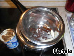 Варим на водяной бане глазурь из 100 г шоколада, 2 ст.л. сгущенки и 1 ст.л. сливочного масла.