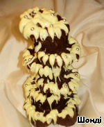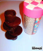 Начинаем собирать шоколадную фигуру: на шоколадную формочку укладываем шоколадный диск (склеиваем с помощью шоколада), в такой последовательности делаем до шести этажей.