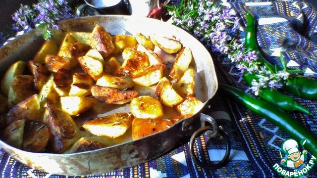 Картофель выкладываем в форму для запекания и заливаем маслом, аккуратненько все перемешиваем - и в духовку, нагретую до 200 градусов, выпекаем до румяной корочки, периодически переворачивая.