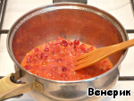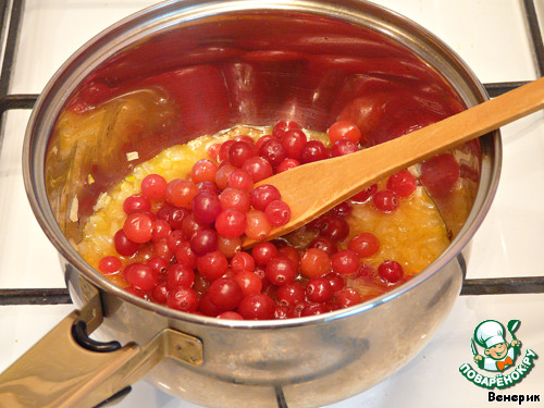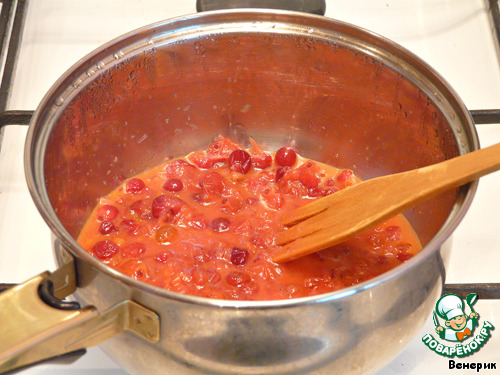Пока запекаются грудки, приготовим клюквенный соус. Если хотите, его можно приготовить заранее, ещё до приготовления филе.