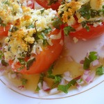 Сочные помидоры под хрустящей хлебной корочкой с травами и пармезаном. Отличная легкая теплая закуска или гарнир. Рецепт этого блюда был размещeн на сайте в 2008 году пользователем Александр1981 под названием "Помидоры запеченные" и иллюстрирован мной в рамках акции "Раскраски".