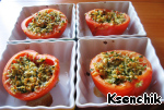 Всегда начинки получалось очень много, и приходилось удалять мякоть у помидор, так сделала и в этот раз, но… ее (начинки) получилось, видимо, должное количество и она уныло провалилась в помидорные чашечки. Вкусно было очень, как всегда, но выглядело уже не так, уж простите за такое фото.