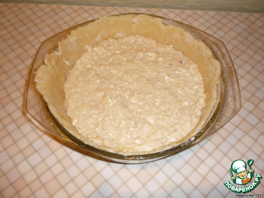 Тонко раскатать 2/3 теста и выложить в форму, сделав бортики.