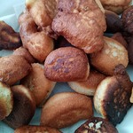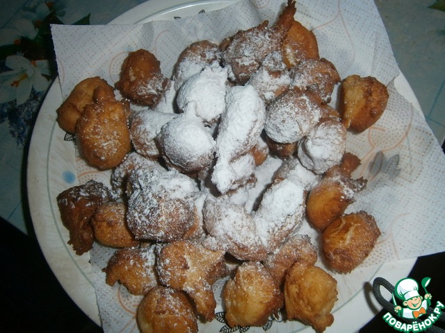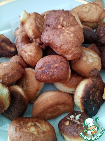 Нагреваем масло, у меня нет фритюрницы – пользуюсь по старинке кастрюлькой, и опускаем в него заготовки. Всплывают моментально, раздуваются в долю секунды без всяких вспомогателей. Очень легкие, воздушные. За счет приличного кол-ва сахара получаются такими румяными. Готовятся очень быстро, только и успевай вытаскивать готовые и закладывать новые заготовки.