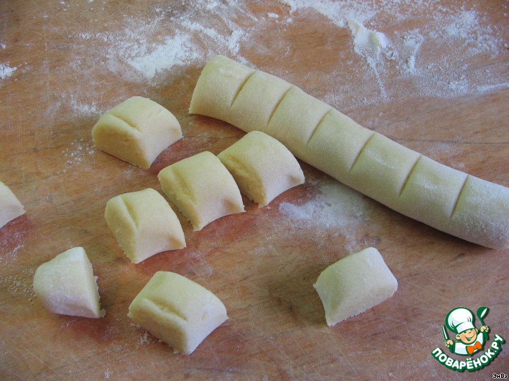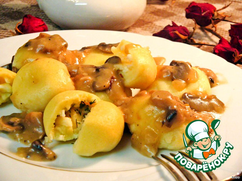 Рецепт «Картофельные кнели с брынзой под грибным соусом»: