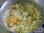 Когда картофель готов, сцеживаем воду и также тщательно растираем его толкушкой, чтобы не было комочков. Немного остужаем, добавляем яйца и часть муки, замешиваем и...