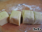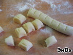 Каждую из частей раскатываем жгутом и режем кусочками в 2-2,5 см.