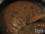 Добавляем грибы с луком, перемешиваем и кипятим еще 3 минутки. Соус можно приготовить заранее и потом подогреть, так как на его приготовление нужно определенное время и кнели за это время остынут.