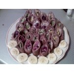 Затем на смазанной растительным маслом сковороде испечь тонкие бличики. Сложить их стопкой; если хотите, то можете смазывать каждый блинчик сливочным маслом, как это делаю я.