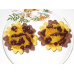 Делала с черносливом - это что-то! Во-первых, работать с тестом - одно удовольствие. Легко раскатываются, такие мягонькие. Во-вторых, безотходное производство, как я люблю: в дело идут и желтки, и белки. В-третьих, ничего мудрёного в технологии нет, готовятся быстро, напортачить оооочень трудно. И наконец, на выходе мягонькие пирожные с нежной, тающей во рту начинкой, с приятной кислинкой чернослива. И на глаз, и на вкус - великолепие!
