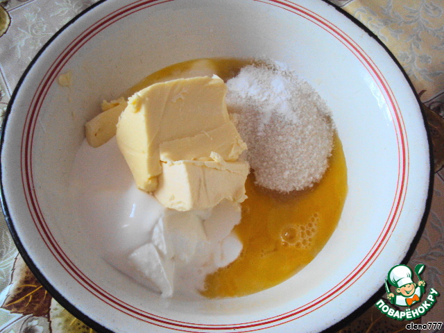 добавила пакетик ванилина и изменила количество муки. В оригинальном рецепте автор пишет, что надо взять 2 стакана муки, но на такое количество масла и сметаны 2 стакана муки было мало, так что пришлось добавлять больше.