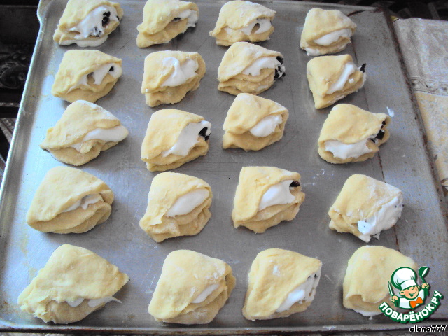 Готовила с изюмчиком, в следующий раз попробую с черносливом. В тесто ушло больше муки, а на выходе получилась целая гора пирожных