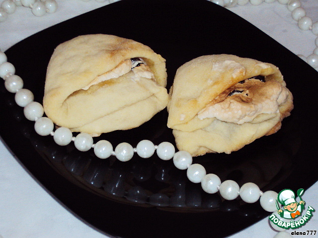 Замечательные пирожные-"ракушки" с запечeнным кремом и черносливом. Попробуйте, ну очень вкусно! Огромная благодарность автору от моих домочадцев за такой вкусный десерт! Рецепт этого блюда был размещeн на сайте в 2008 году пользователем zmeiyka2008 под названием "Ракушки" и иллюстрирован мной в рамках акции «Раскраски».