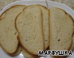 Хлеб нарезаем тонкими ломтями.