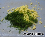 Мелко режем укроп, натираем на терке вареный желток, перемешиваем.