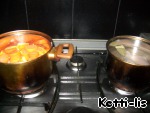 С курицы снять кожу и отварить с лаврушкой и горошком перчика душистого. Морковь залить молоком и тоже поставить варить. Когда морковь зальете молоком, то оно полностью морковку не покроет, я еще подумала, что вот, вечно нормальные пропорции указать не могут :) . Но оказалось, что все верно! Как закипит, то морковь сок даст и пол-литра молока будет совершенно достаточно, так что не пугайтесь. Пускай все варится.