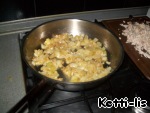 Морковку вместе с молоком в той же кастрюльке превратить в пюре, как картошку. Дать ей остыть и добавить яйца. По вкусу приправить солью и можно еще перцем, если любите. Перемешать. Окорочка освободить от косточек, мясо нарезать. Лук и чеснок измельчить и поджарить на сковородочке с растительным маслом.