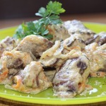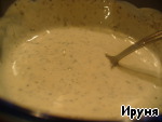 В оригинале рецепта предлагалось смешать 2 ст. л. сметаны и 2-3 ст. л. майонеза... Можно сделать так... Но я майонез не запекаю. Поэтому я смешала 3 ст. л. сметаны с 1 ст. л. сливок 22% и приправила немного горчицей и несколькими каплями лимонного уксуса, посолила, поперчила, добавила пропущенный через пресс чеснок и сушеные укроп и петрушку. Хорошо перемешала. Если нет сливок, можно использовать только сметану. Уксус у меня самодельный - http://www.povarenok .ru/recipes/show/440 66/, если бы его не было, добавила бы пару капель столового уксуса + пару капель лимонного сока. -