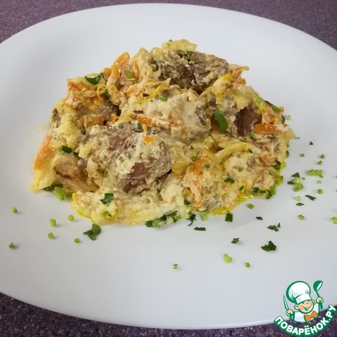 Рецепт «Пикантная куриная печень в сырном соусе»: