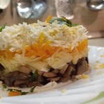 1 слой - обжаренные грибы с луком + немного майонеза. -