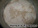 Заквасочку можно взять любую. Для этого хлебушка мне больше нравится ржаная. Для этого, за 2 дня до выпечки хлеба ее нужно подкормить ржаной мукой (один день и другой день тоже). Рецепт закваски пшеничной можно взять у меня в рецептах, а затем подкармливать ее 2 дня ржаной мукой, вот и выйдет ржаная закваска. Если у Вас уже есть ржаная закваска, то за 12-24 часа подкормите ее в пропорции (1:2:1, т. е. 1 порция закваски : 2 порции муки : 1 порция воды). Итак, берем 400 грамм закваски, соединяем ее с водой и хорошо размешиваем. Далее смешиваем 2 вида муки и добавляем смесь к закваске с водой.