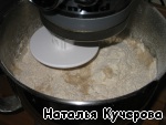 Так как времени у меня не было совсем, то тесто я готовила с помощью комбайна с насадкой (крюк). У кого есть время или, например, нет комбайна, то хлебушек отлично вымешивается руками. Подробный процесс замеса хлеба руками можно посмотреть в других моих хлебных рецептах. Вымешиваем тесто на 2 скорости 5 минут. В конце замеса добавляем соль и месим еще 1-2 минуты.